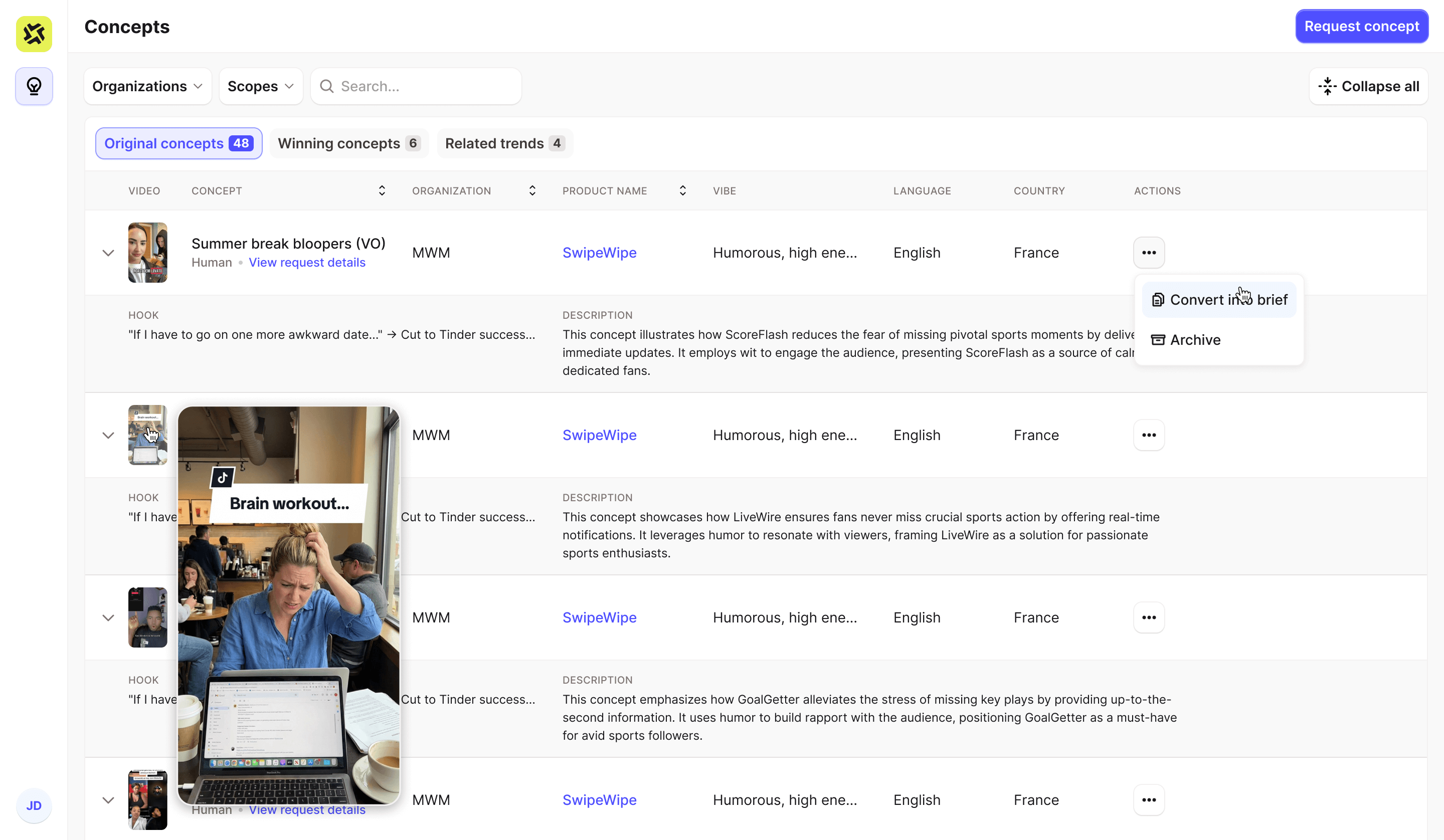 Vetted creators turn winning trends & concepts into posted video ads.